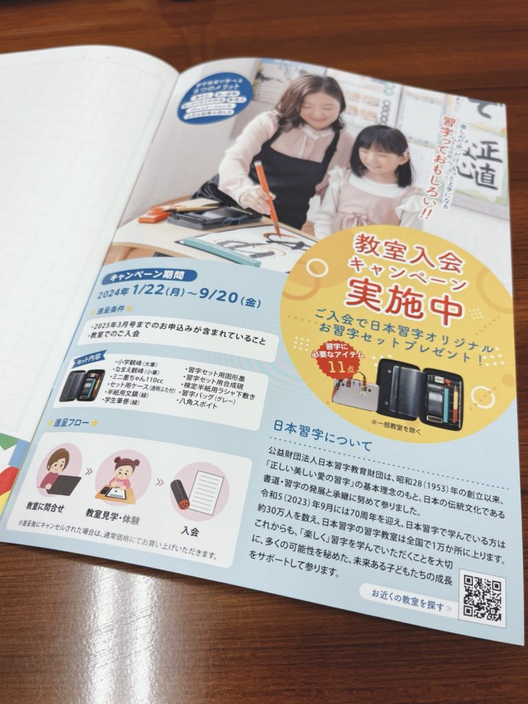 掲載されました! ホーム タグ: お知らせ 2024-05-26 0 こちらは小学校で無料配布される応援ノート、今年は日本習字です。 なんと最後から2ページ目に先生からのコメントとして掲載されました! この辺はまだ配布されていないようです。 こちらはサンプルとして送っていただいたものです 配られたら、是非見てくださいね! —本日はスマホから投稿します—まだこちらのサイトのアプリに慣れていなくて、写真の大きさや文字の位置がおかしな感じでアップされていないか不安、、 おかしな感じになっていたら帰宅後投稿確認して修正します。 コメントを残す コメントをキャンセルメールアドレスが公開されることはありません。 ※ が付いている欄は必須項目ですコメント ※ 名前 ※ メール ※ サイト 次回のコメントで使用するためブラウザーに自分の名前、メールアドレス、サイトを保存する。 投稿者 bimojimoji@gmail.com 関連投稿 タグ: お休みの過ごし方 お知らせ その他 新年のご挨拶 2026-01-01 0 年末、電車に乗っているときに、ふと目に入った... Well-being元住吉習字教室新年のご挨拶 すべて読む タグ: お知らせ 長年の努力が形に 8段試験 2025-11-19 0 9年ほどお稽古を続けている生徒さんが、ついに... 8段試験日本習字 すべて読む タグ: お知らせ 学級閉鎖中の通塾について 2025-11-10 0 「本人は元気だが、自分のクラスが学級閉鎖にな... 学級閉鎖学級閉鎖中の通塾振替 すべて読む タグ: お知らせ MOA美術館児童作品展 2025-10-22 0 うれしいお知らせです。 この度、さかきさん(... すべて読む タグ: お知らせ お天気が悪い日のお稽古について 2025-09-11 0 本日は雷雨が強まり、道中大変なお稽古の日とな... 悪天候時のお稽古について道路が川雷雨 すべて読む タグ: お知らせ 7月24日(木)お稽古について 2025-07-22 0 保護者のみなさまへ いつもお世話になっており... お休みのお知らせ表彰式 すべて読む 投稿ナビゲーション 前の投稿次の投稿