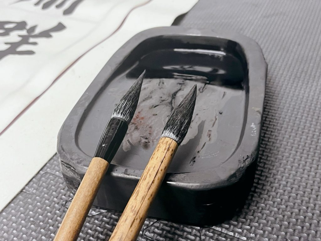 墨もちょっとだけいい墨を使って、お気に入りの硯を使います。