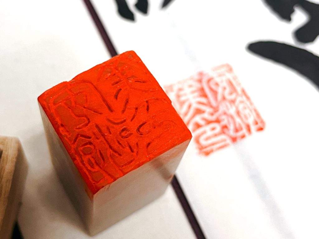 自分で彫った落款を作品に押す時は、気分が上がります。