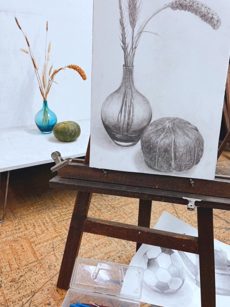デッサンを通して「見る力」や表現の基礎を学んでいます。